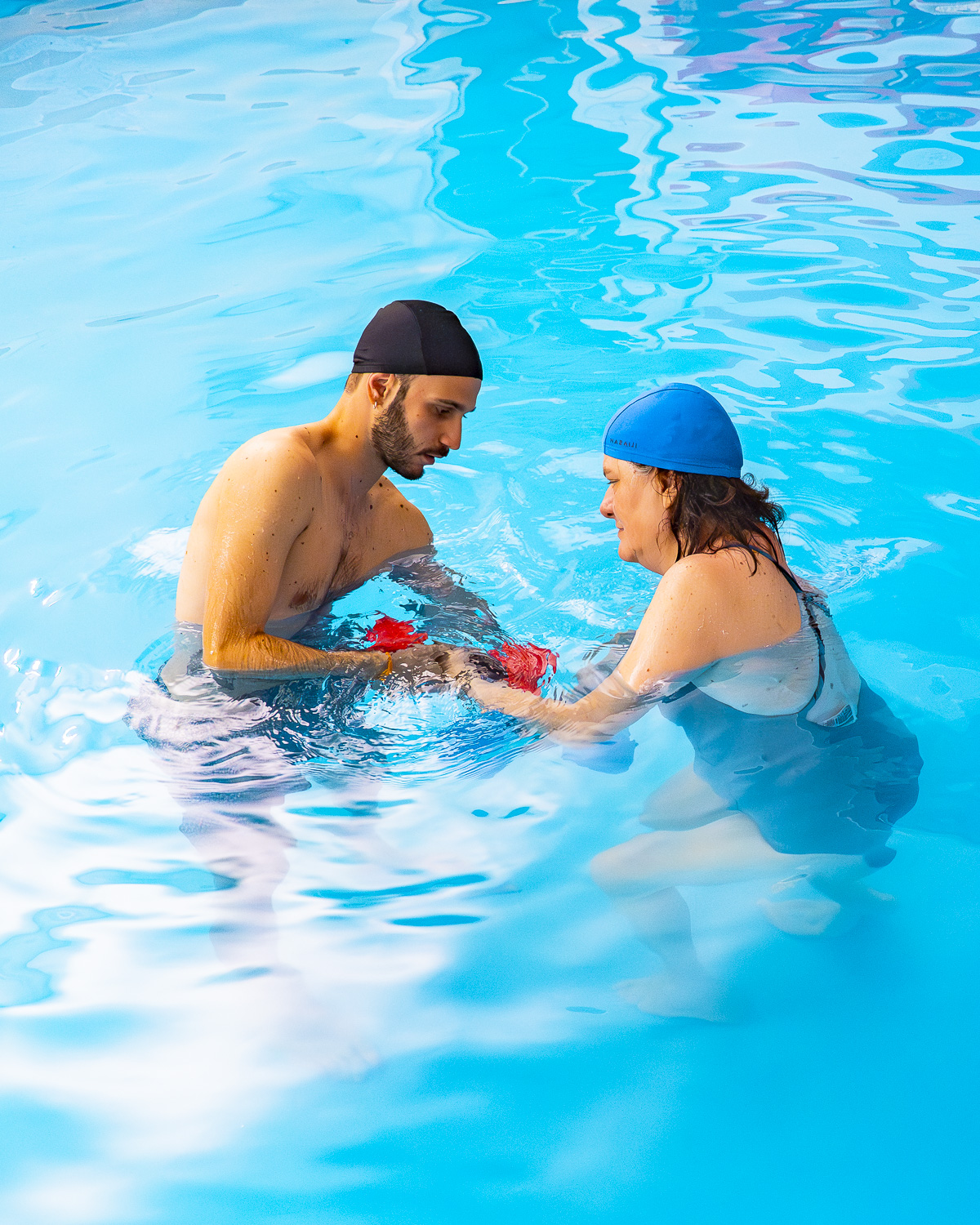 Nell’ultima fase, si introducono piccoli attrezzi acquatici (come manubri galleggianti o guanti palmati) per aumentare la resistenza idrodinamica. L’obiettivo è ripristinare la forza completa dell’arto superiore, preparandolo al ritorno alle normali attività quotidiane o allo sport.